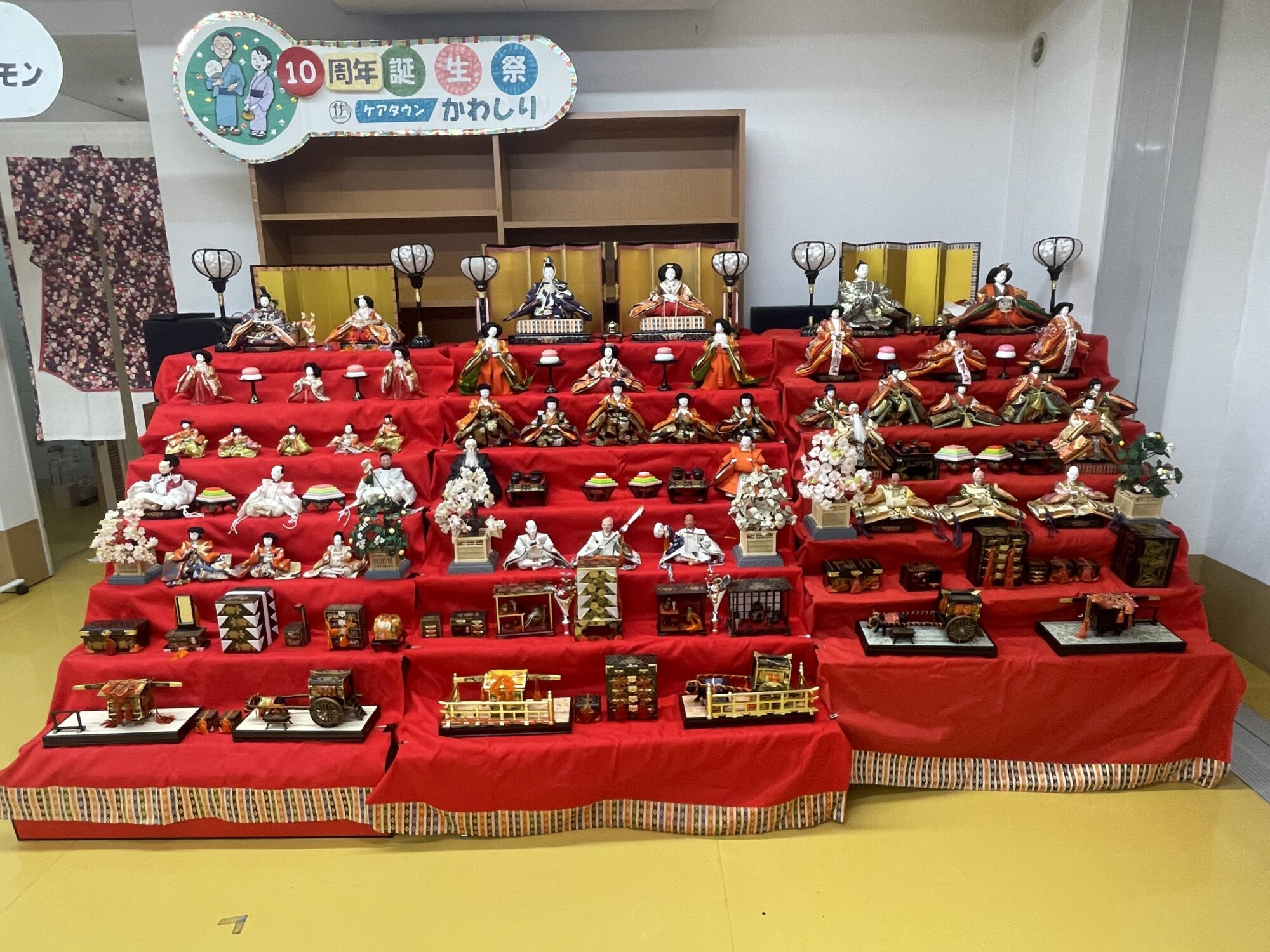 ケアタウンかわしり交流ホールに、お雛人形を飾りました。