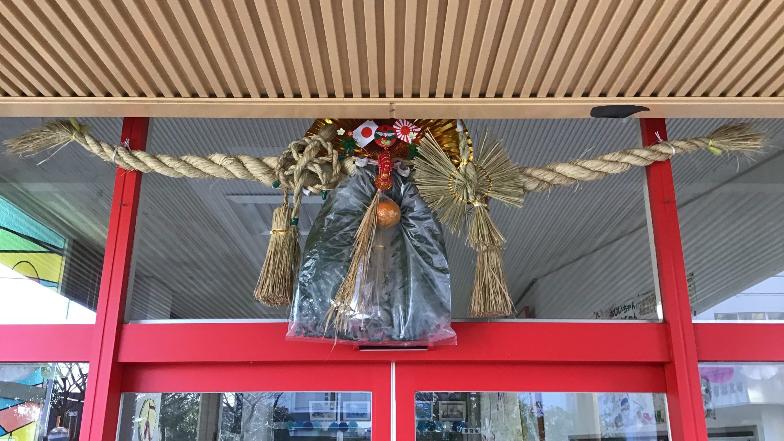 施設の厄除を祈って巨大な〆縄飾りで幕開けです。