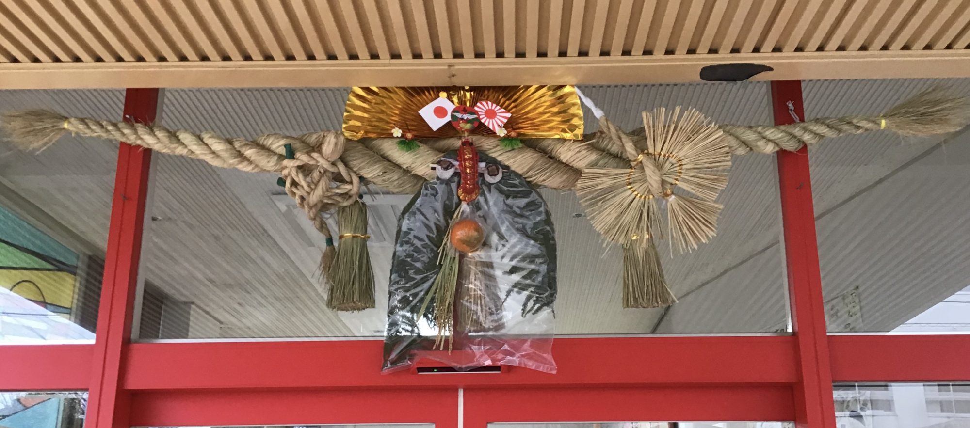 今年も巨大しめ縄にて施設の厄除を祈っています。