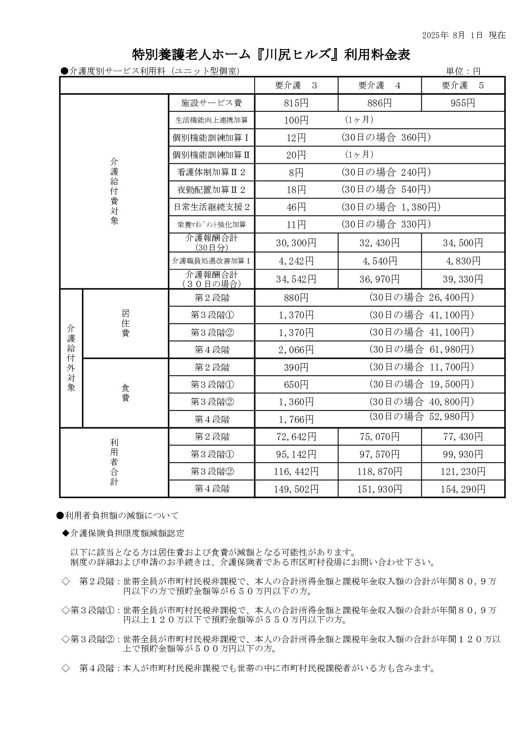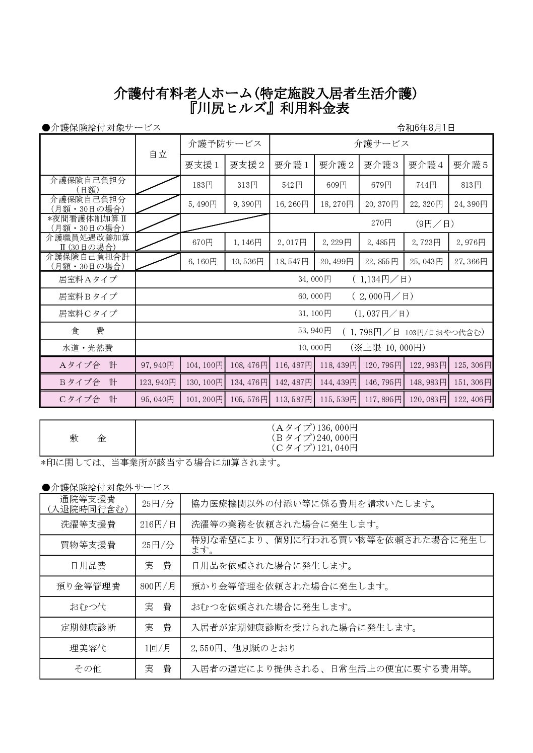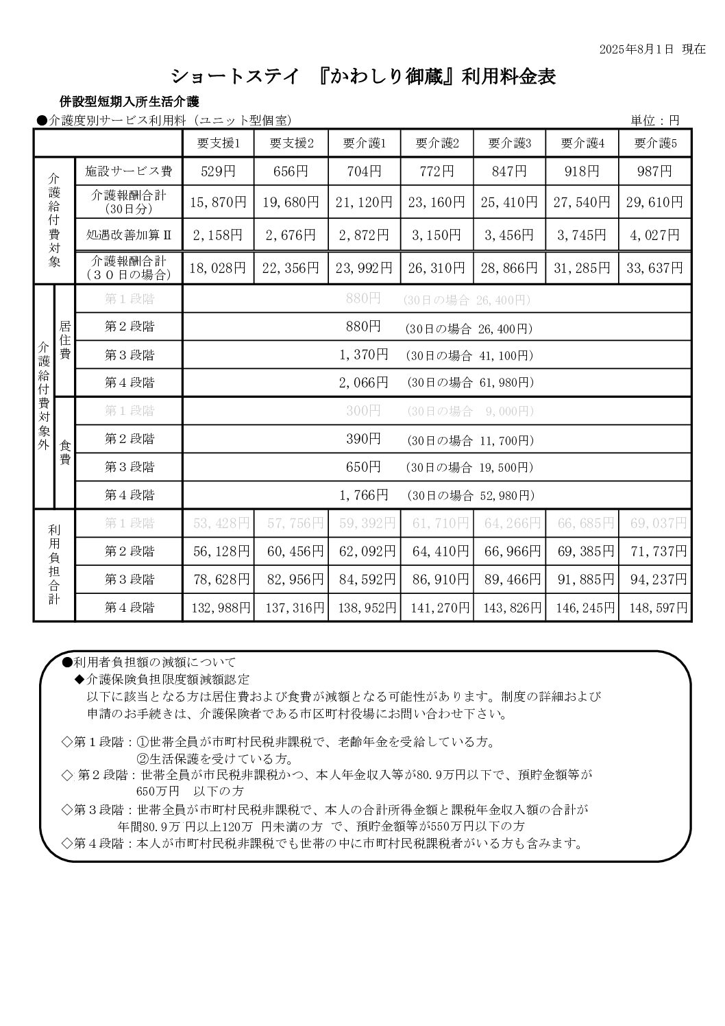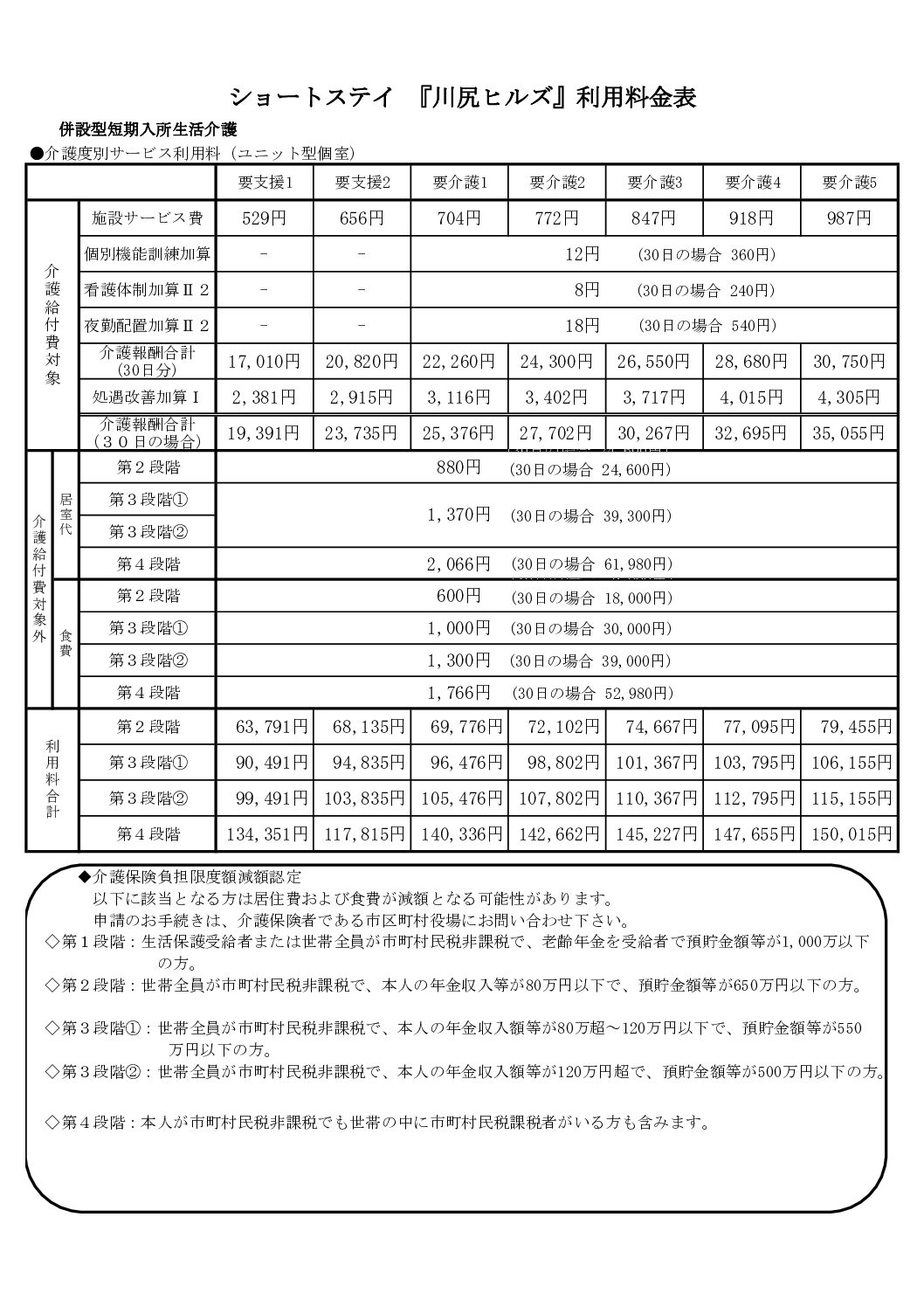 料金表  |  社会福祉法人 竹崎記念福祉会 ケアタウンかわしり